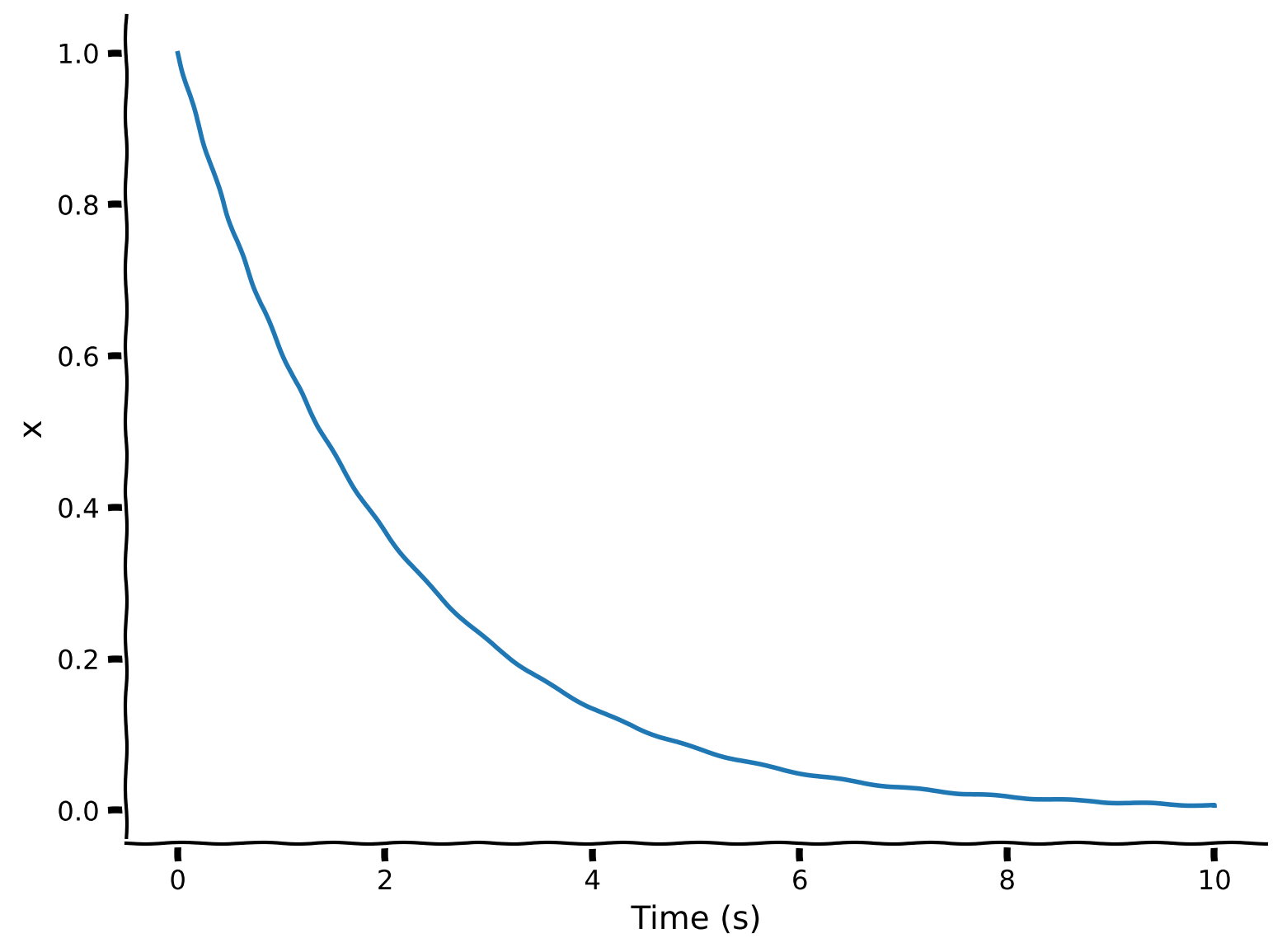 A common notational short-hand is to write \(\dot{x}\) for \(\frac{dx}{dt}\). The dot means “the derivative with respect to time”.