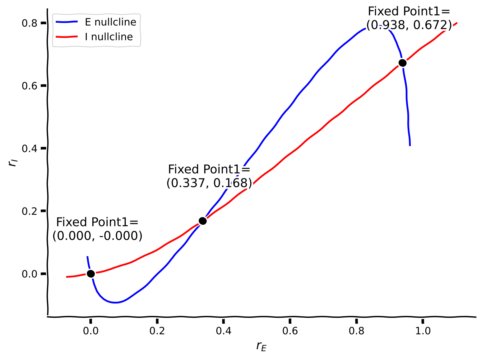 Find and plot the fixed points of the Wilson-Cowan model.
